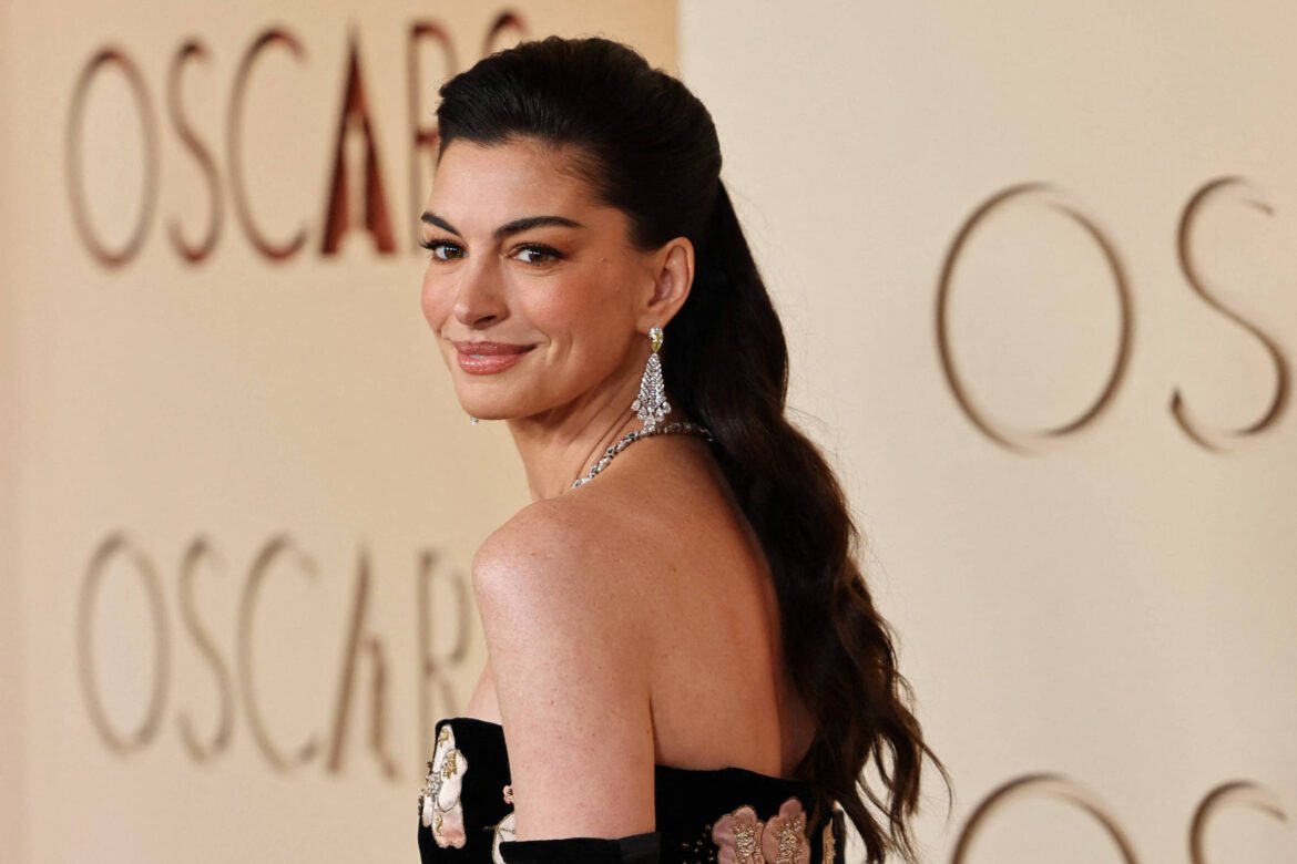 A bordo de um deslumbrante vestido Valentino com estampa floral, Anne Hathaway apresentou os prêmios de melhor figurino e maquiagem no Oscar, no último domingo (15), ao lado de Anna Wintour.