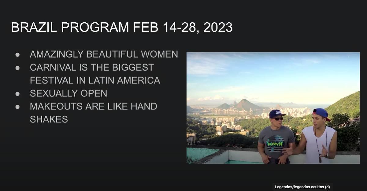 Segundo o processo, os crimes ocorreram no contexto de um programa chamado Millionaire Social Circle, divulgado como curso de desenvolvimento pessoal voltado a homens estrangeiros com dificuldades de relacionamento.