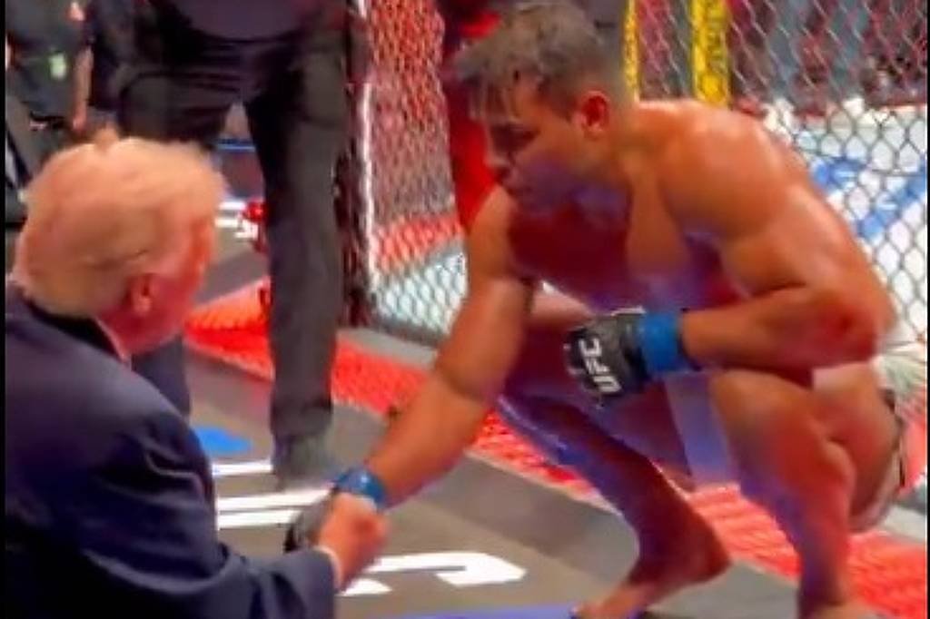 O presidente dos Estados Unidos, Donald Trump, elogiou a beleza do lutador brasileiro Paulo Borrachinha após ele vencer no UFC 327, na noite de sábado (11), em Miami.