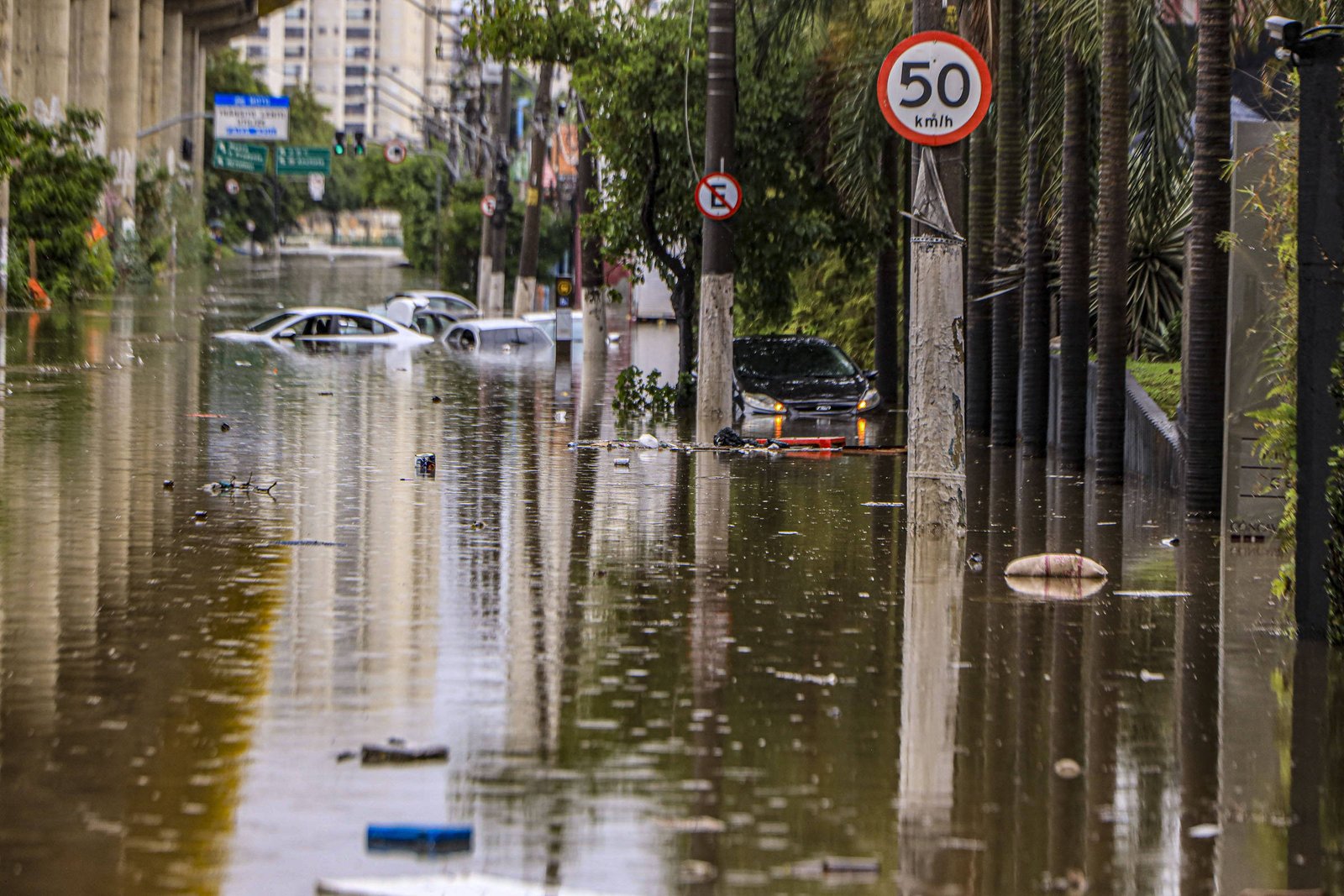 A capital paulista entrou em estado de atenção para alagamentos e recebeu alerta severo para temporais no final de semana. No aeroporto de Congonhas, parte do muro do terminal caiu na avenida dos Bandeirantes após o temporal de domingo.