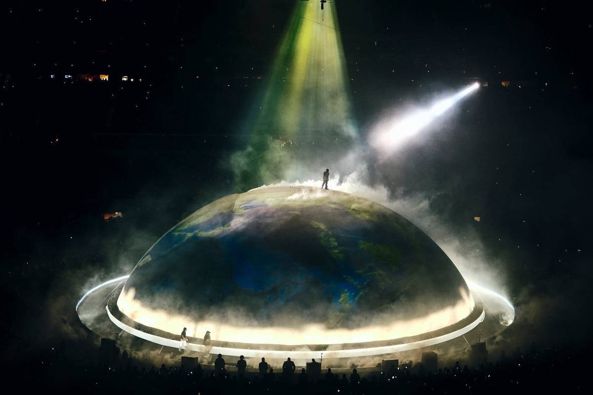Por mais de duas horas na noite de quarta-feira (1 de abril), Ye, o rapper anteriormente conhecido como Kanye West, se apresentou em um palco futurista em formato de esfera que, por vezes, era iluminado para se assemelhar a um globo girando. Durante esse período finito de tempo, sua meia década de controvérsias antissemitas e racistas pareceu não importar para ele ou seus seguidores. Em vez disso, ele parecia estar no topo do mundo.