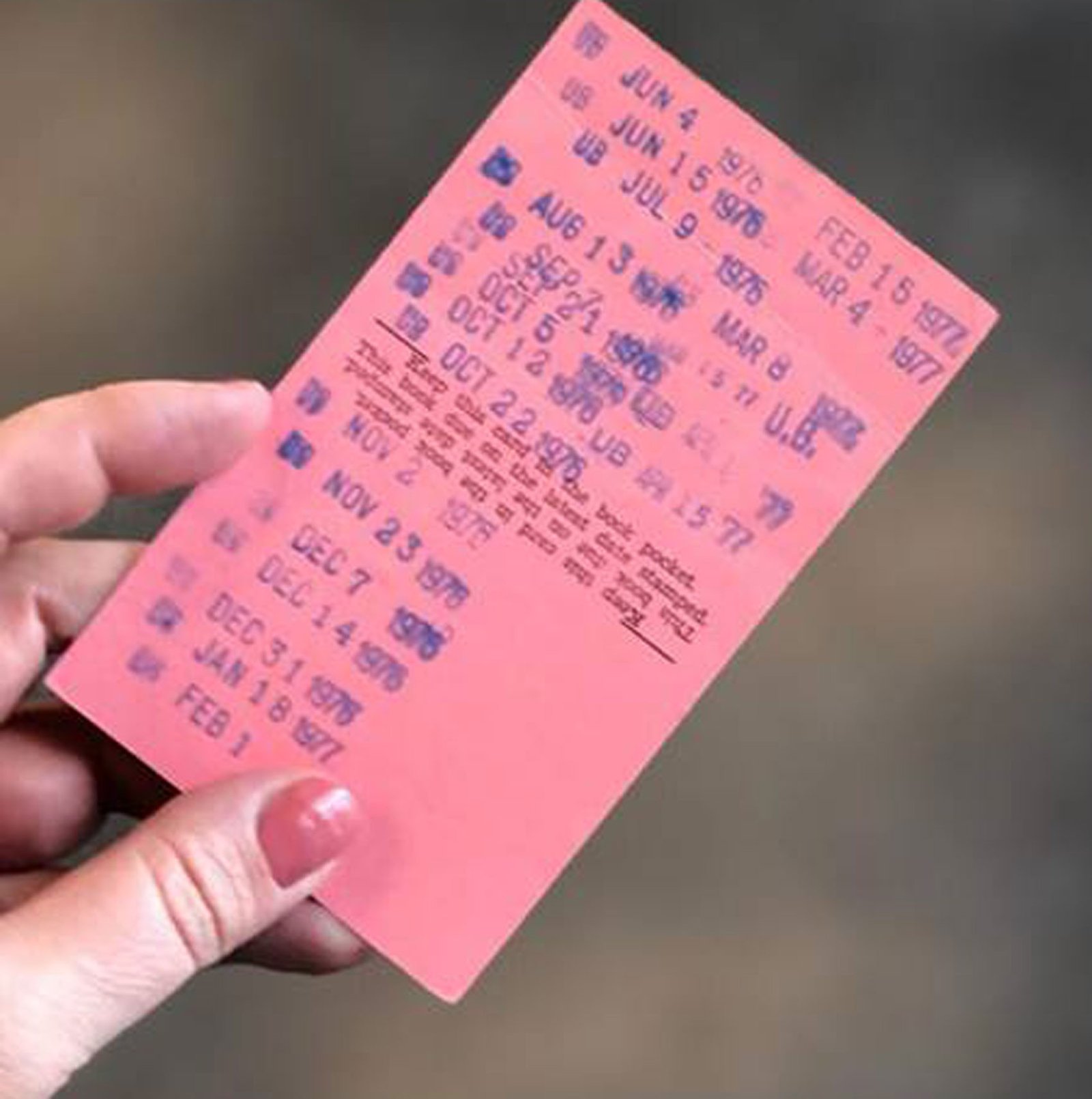 O cartão de empréstimos tinha como data de devolução um dia de 1977. O livro havia sido retirado da filial da biblioteca em Union Branch.
