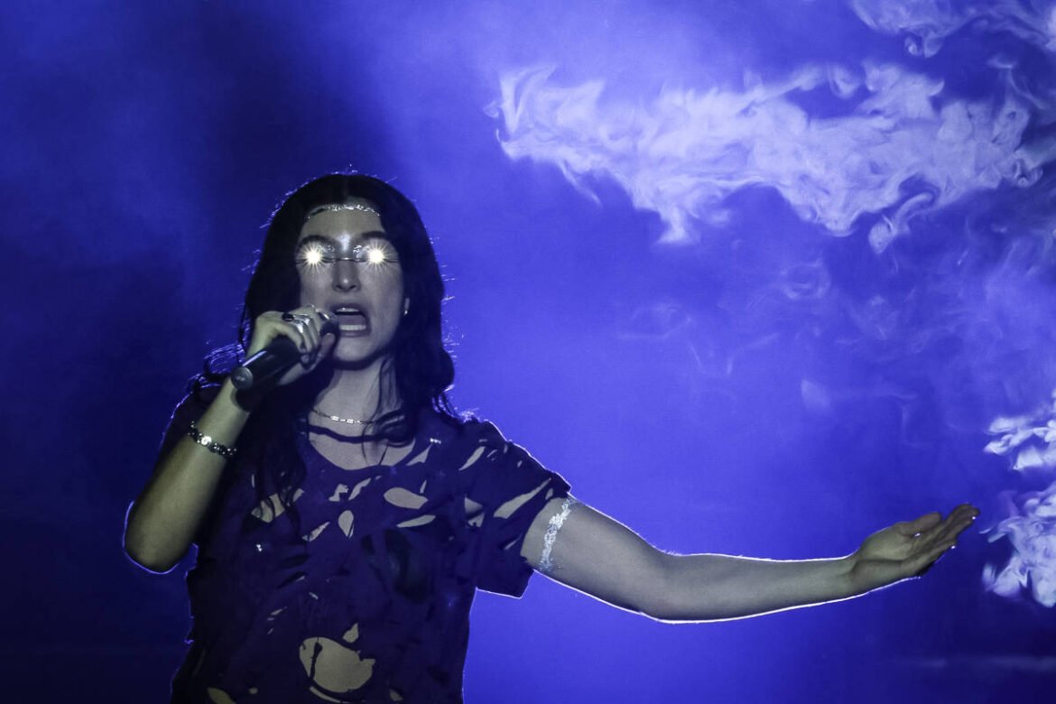 As luzes do palco se apagam, o som que serve de base para “Hammer” se espalha pelo Autódromo de Interlagos e ela aparece —ou só as duas lâmpadas de seus óculos.