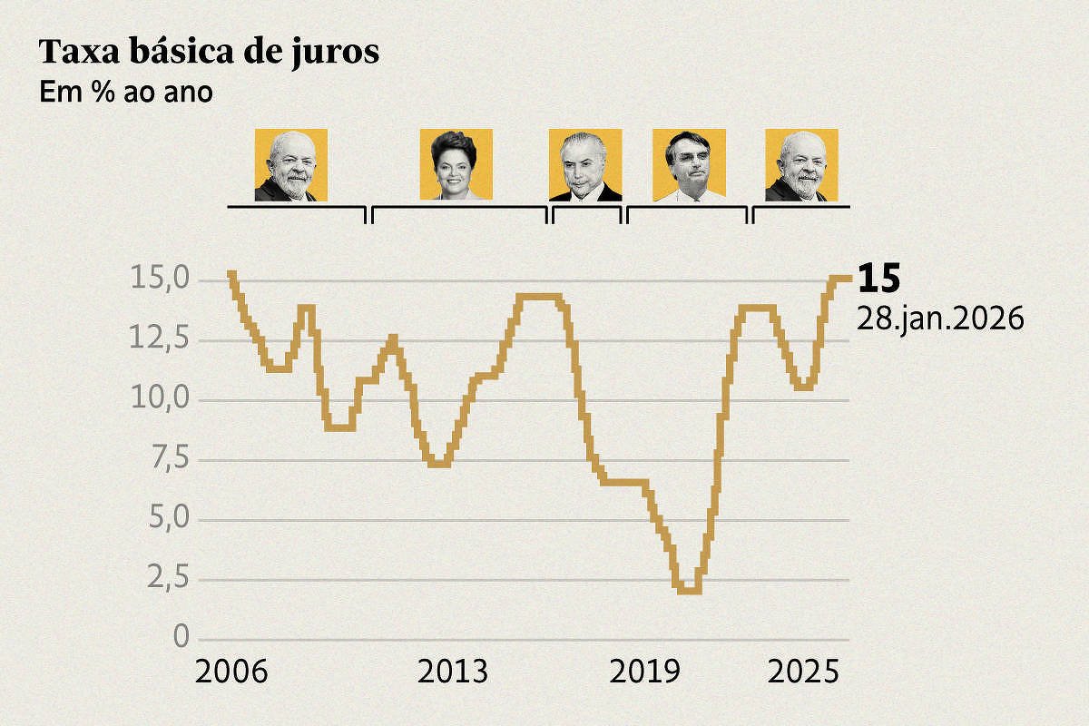 Ou seja: por conta da inflação esperada acima da meta e de um quadro de algum superaquecimento até meados do ano passado, a Selic de fato deveria se situar em terreno contracionista –isto é, acima da Selic neutra, estimada hoje em algo entre 9% e 10% a.a. Contudo, ela não deveria ter chegado a 15%, e sim a 13,5% ou 14%, segundo a função de reação pré-Galípolo.