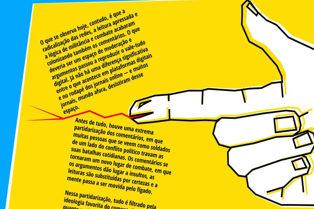 O que se observa hoje, contudo, é que a radicalização das redes, a leitura apressada e a lógica de militância e combate acabaram colonizando também os comentários. O que deveria ser um espaço de moderação e argumentos passou a reproduzir o vale-tudo digital. Já não há uma diferença significativa entre o que acontece em plataformas digitais e no rodapé dos jornais online —e muitos jornais, mundo afora, desistiram desse espaço.