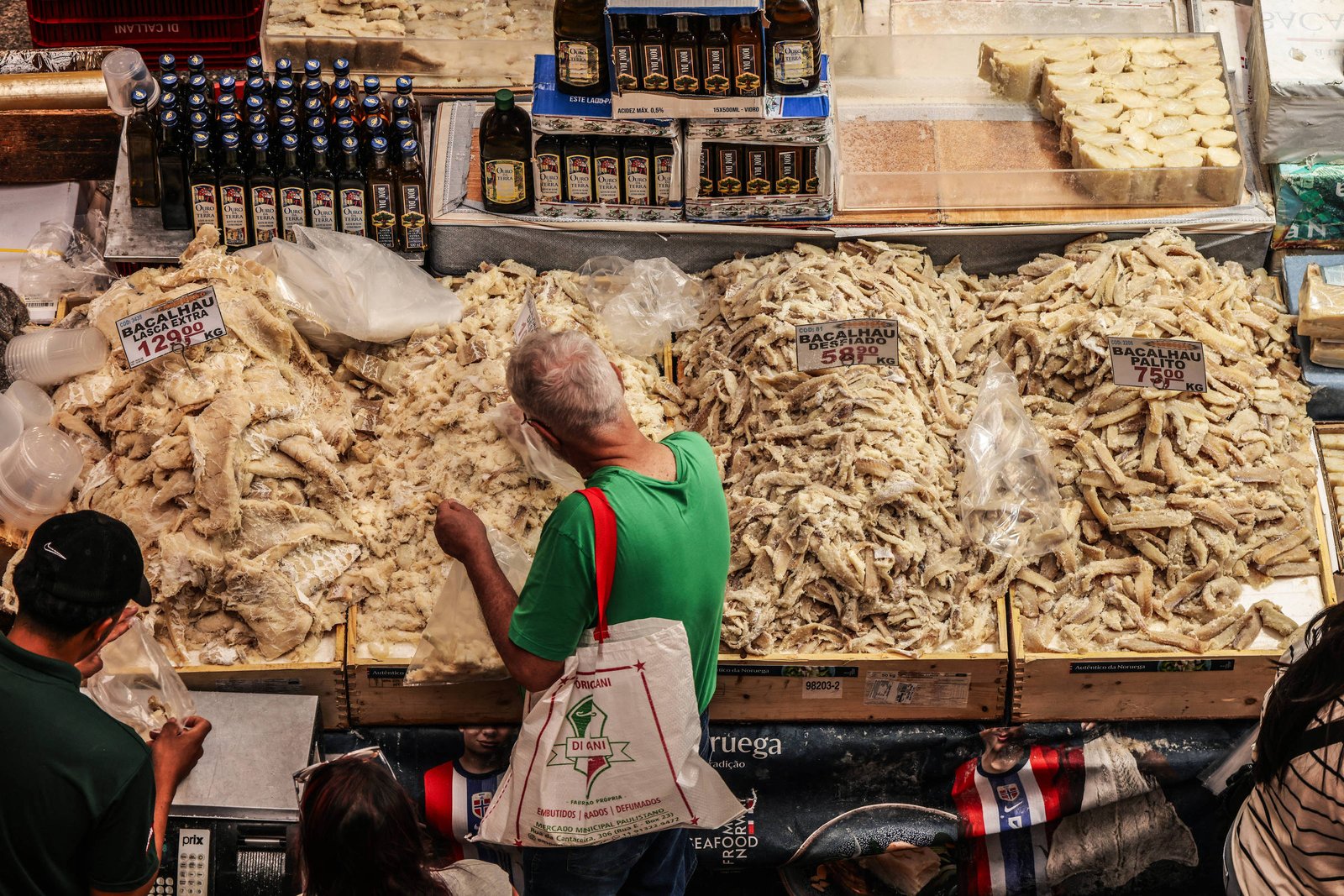 Diego Michel, 34, gerente de um dos boxes, diz que, neste ano, os preços do bacalhau estão no mesmo padrão de 2025. Mas comenta que o movimento do mercado é menor desde a pandemia: “Até 2019 ficava o mês todo cheio. Agora é mais na última semana mesmo, na Semana Santa”, afirma.