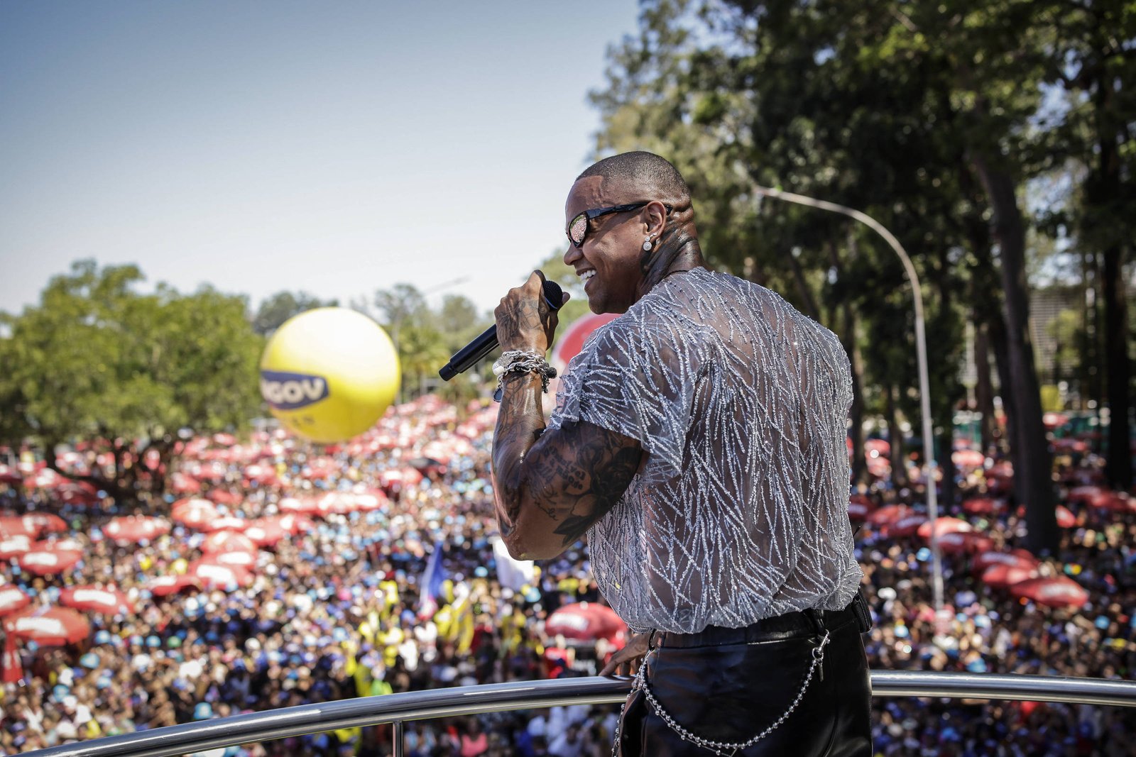 Léo Santana durante o bloco Vem com o Gigante em 2025