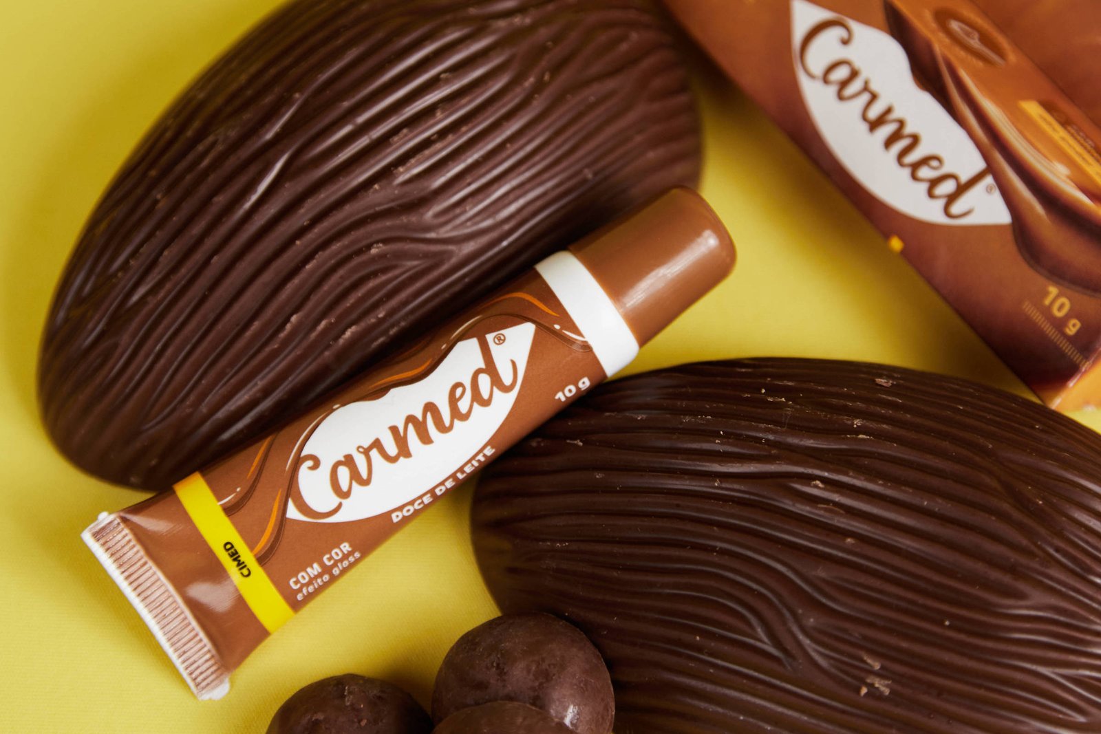 As lojas também venderão ovos de Páscoa com brinde da Carmed, produto labial da Cimed popular com o público infantojuvenil.